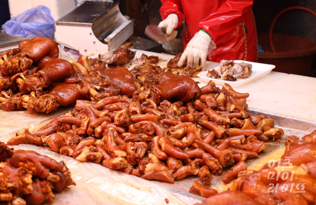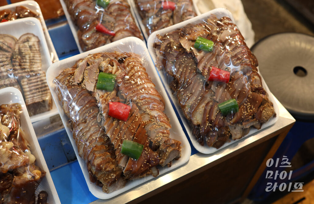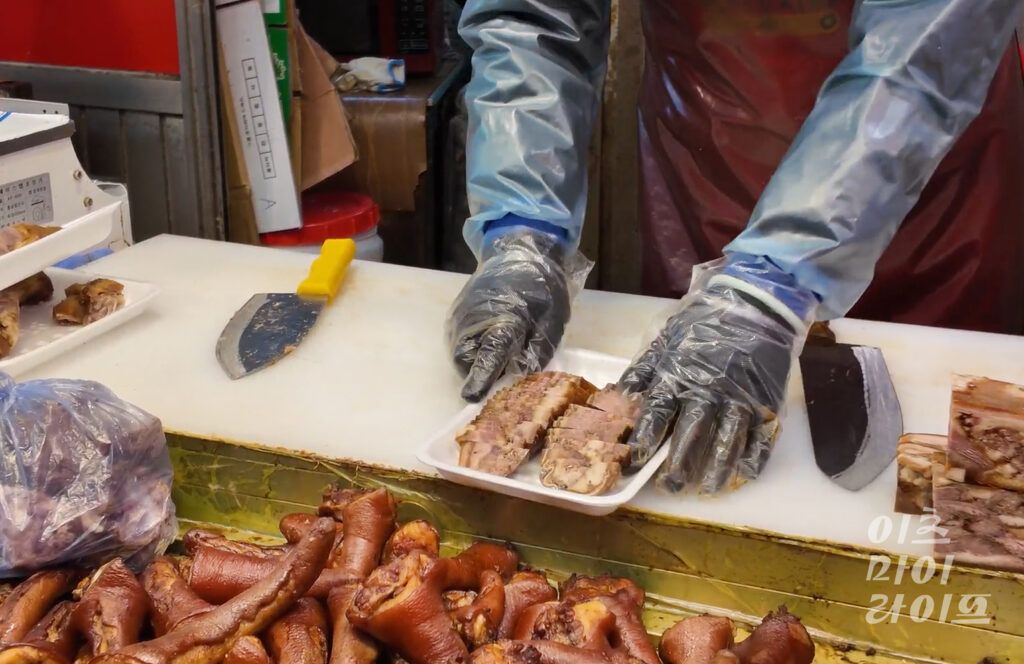 네, 돼지 꼬리랑 편육도 함께 판매하고 있어요. 그중에 편육은 따로 대량으로 납품하는 곳도 있고, 손님들에게도 인기가 많아요.