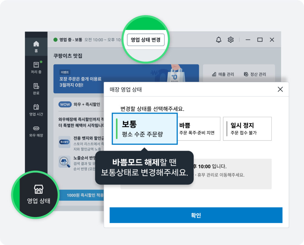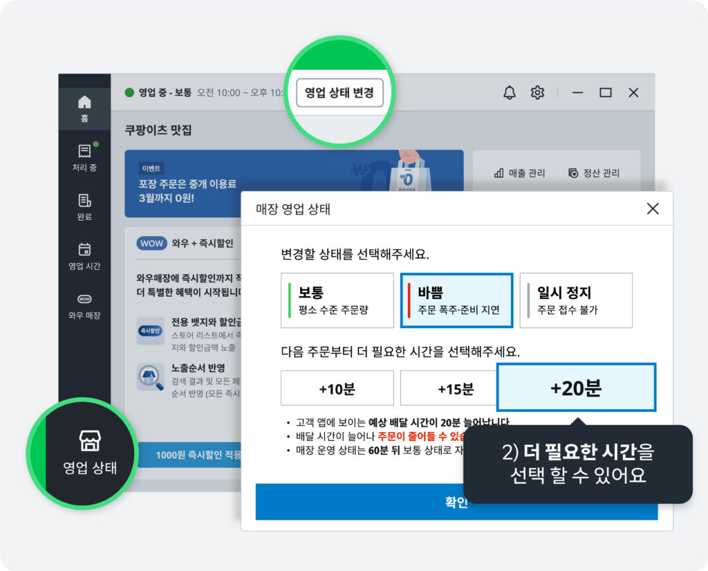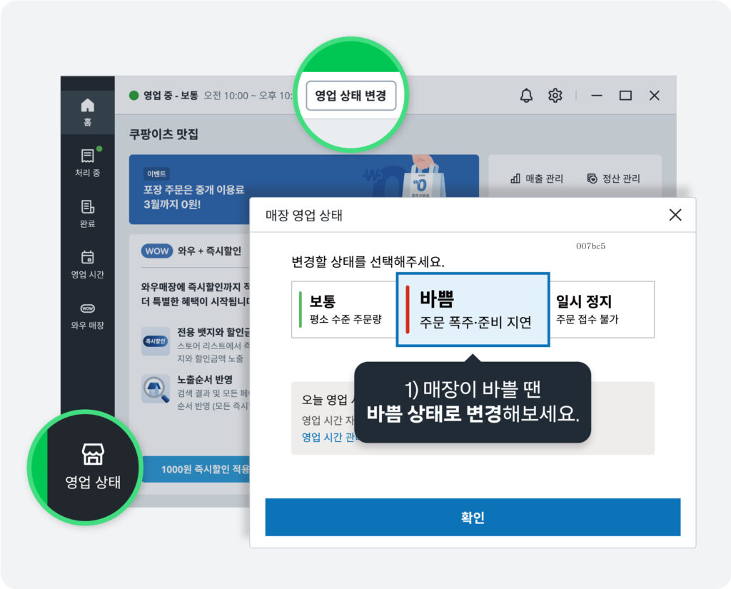 바쁨 설정으로 우리 매장 노출과 매출도 지켜, 고객 주문도 놓치지 않을 수 있어요.