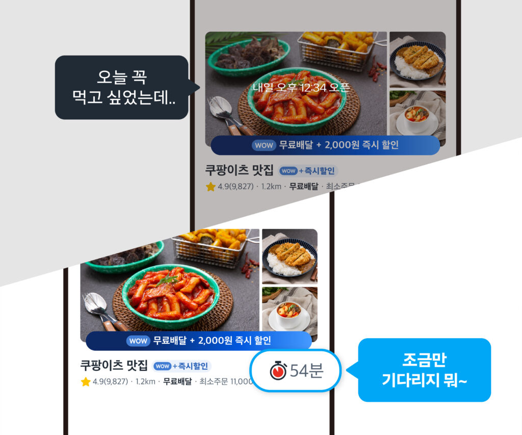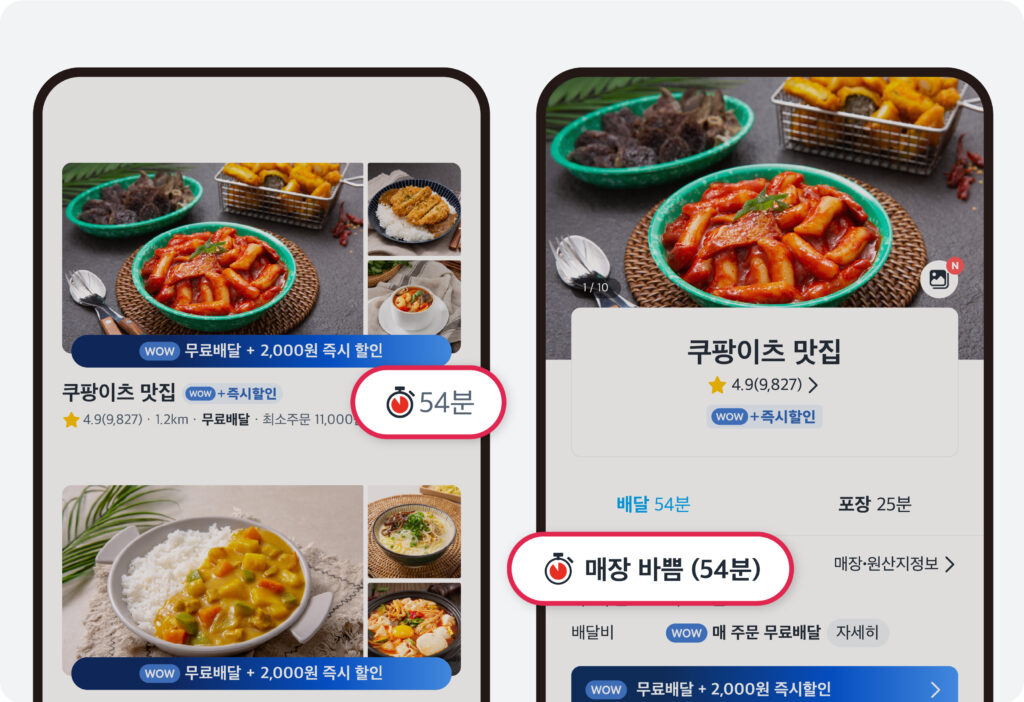 고객은 추가된 배달 예상시간을 미리 알고 주문하여 늦어지는 조리 상황에도 주문 취소를 예방할 수 있어요.