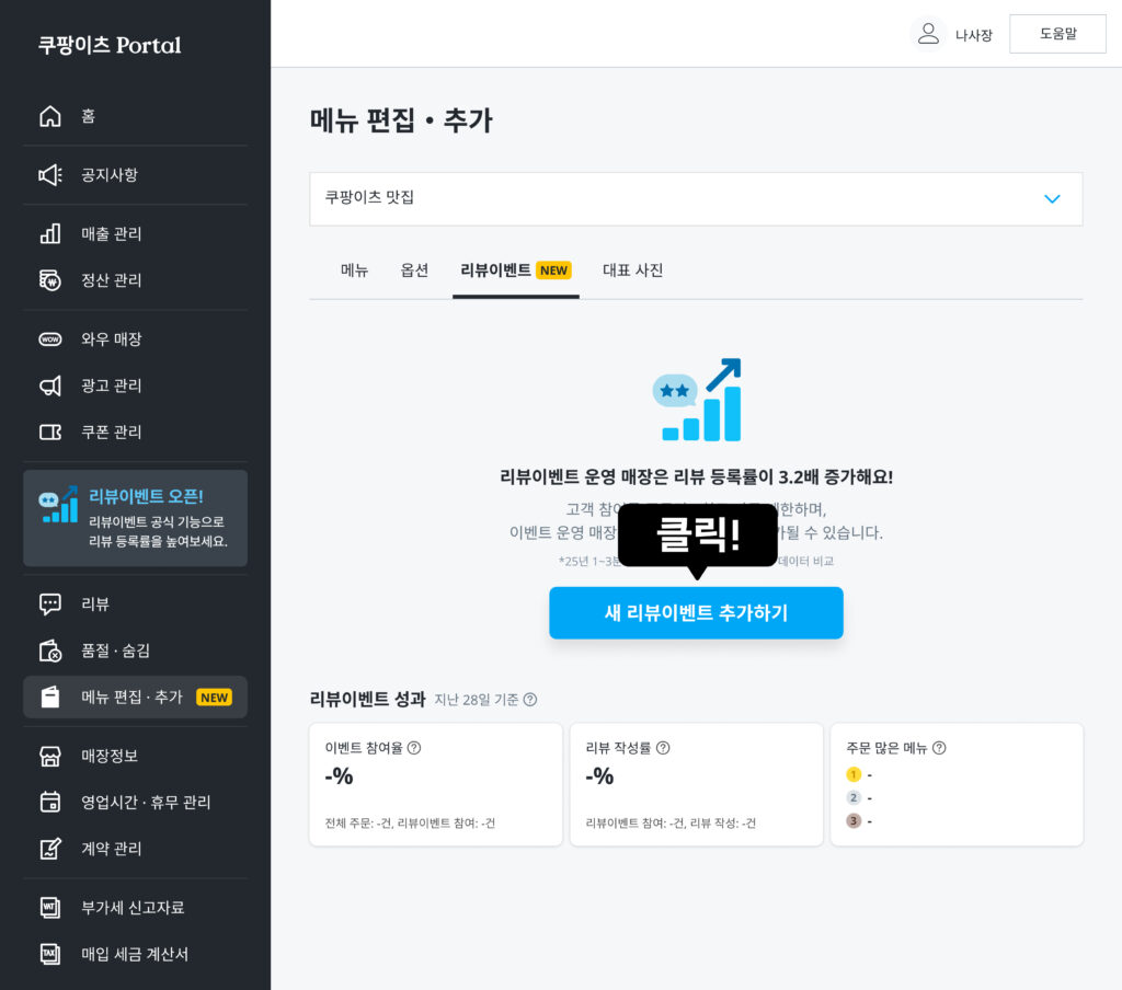 01. ‘새 리뷰이벤트 추가하기’ 클릭
