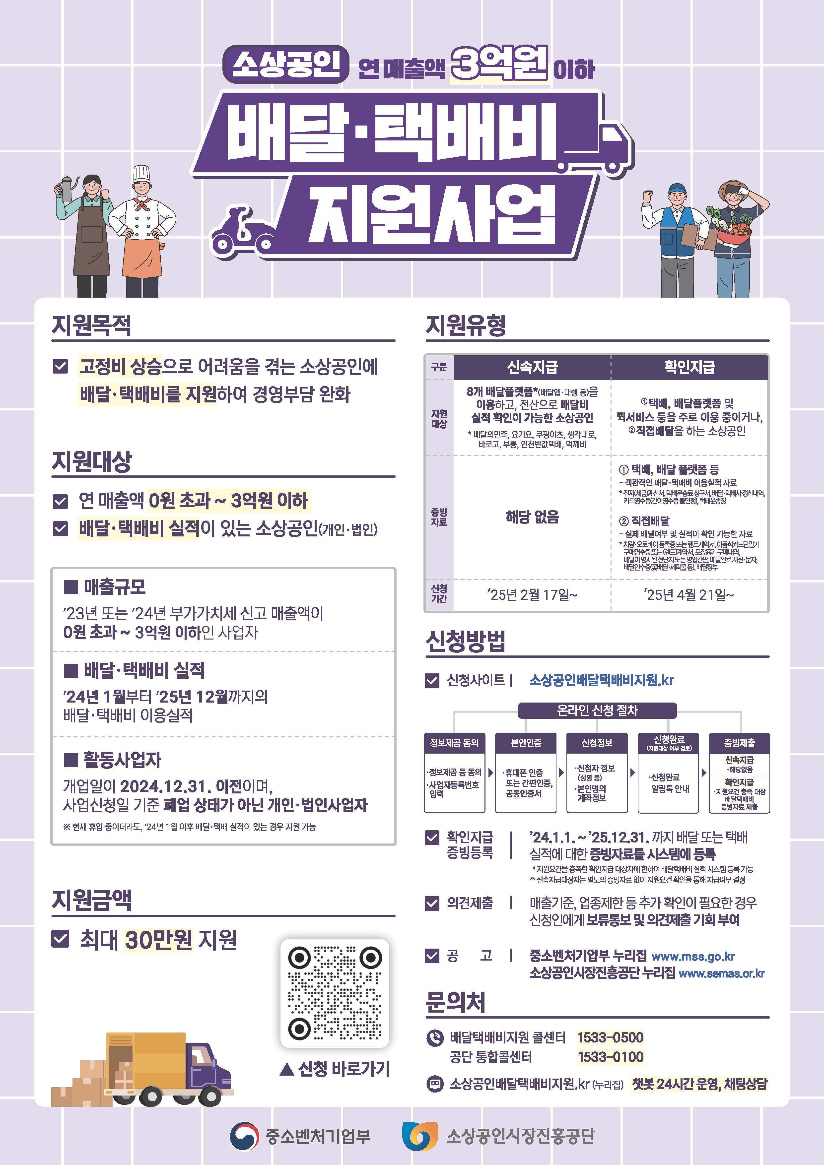 [공지] 소상공인 배달 · 택배비 지원사업 안내