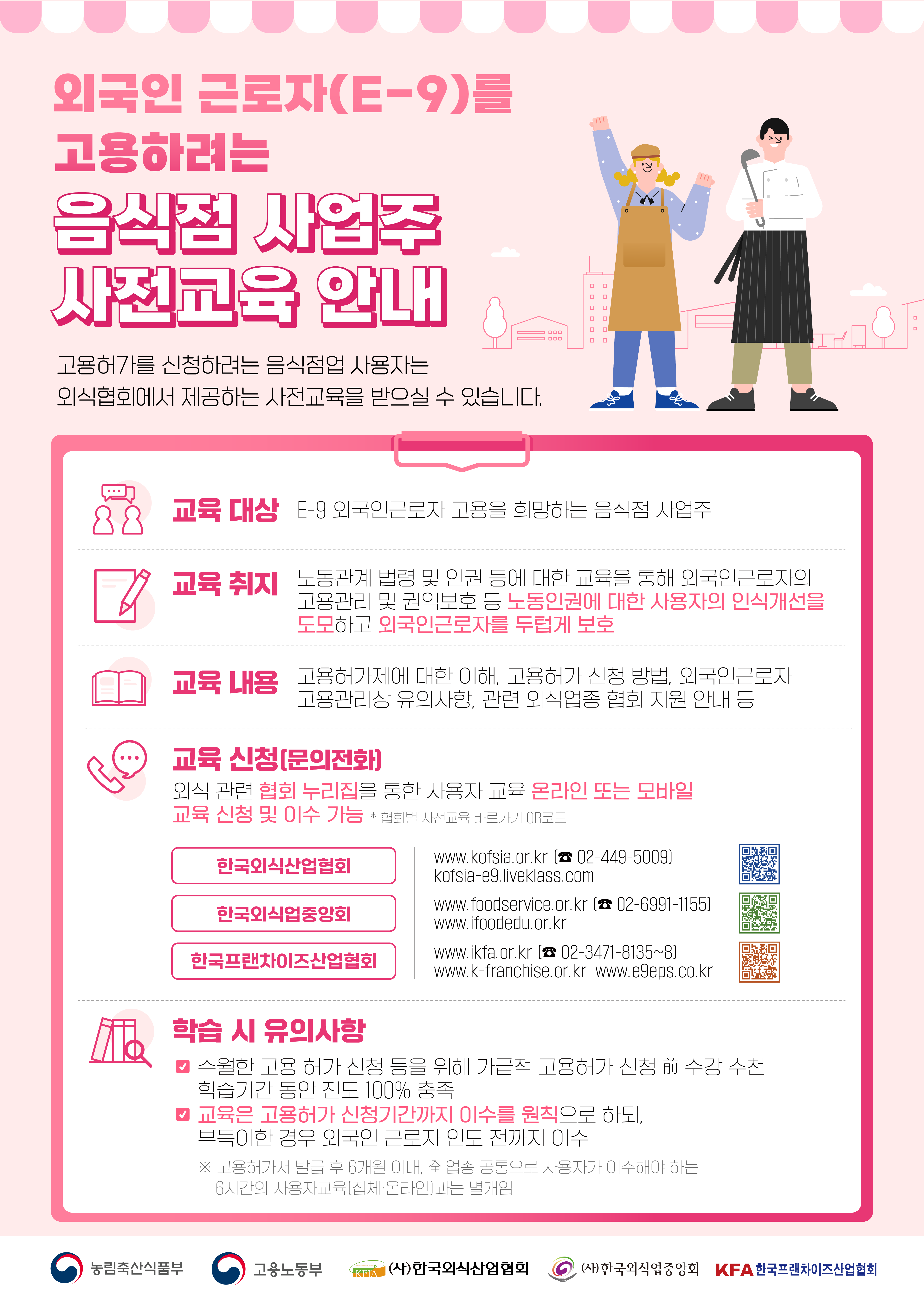[공지] 고용허가제 음식점 사업주 사전교육 안내