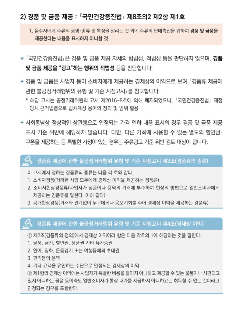 • 18페이지 2번 항목) 경품 및 금품 제공 : 「국민건강증진법」 제8조의2 제2항 제1호