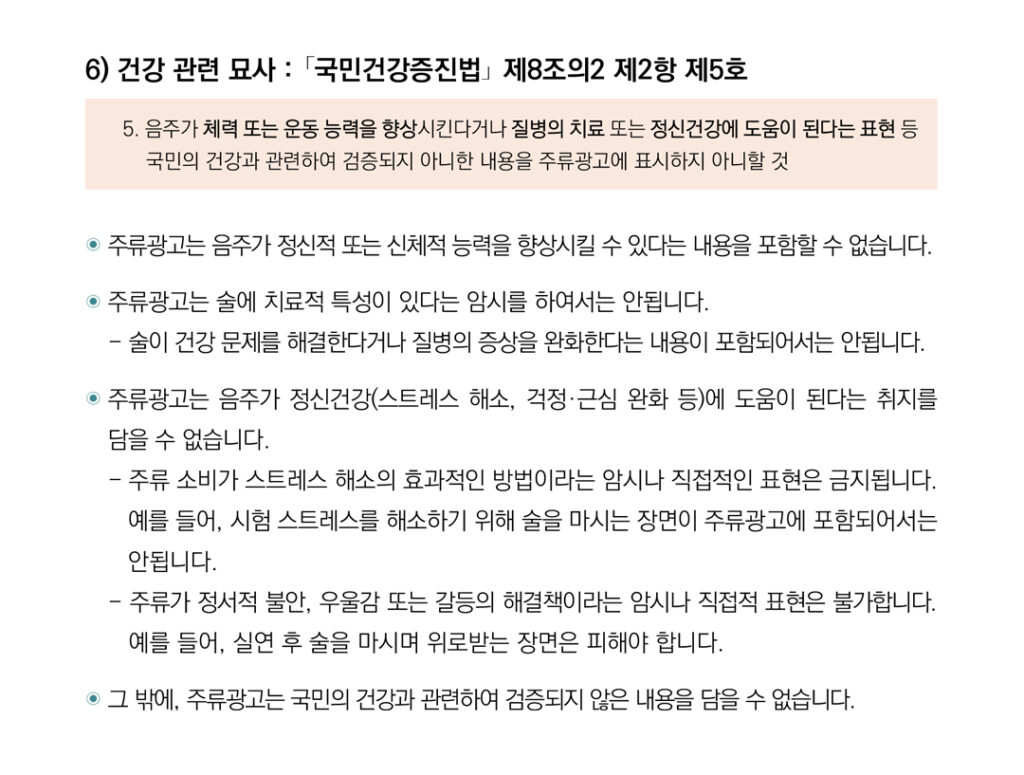 • 21페이지 6번 항목) 건강 관련 묘사 : 「국민건강증진법」 제8조의2 제2항 제5호