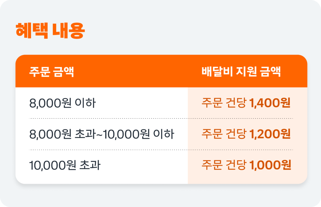 1️⃣ 기존 참여 매장 사장님 배달비 추가 지원 혜택!