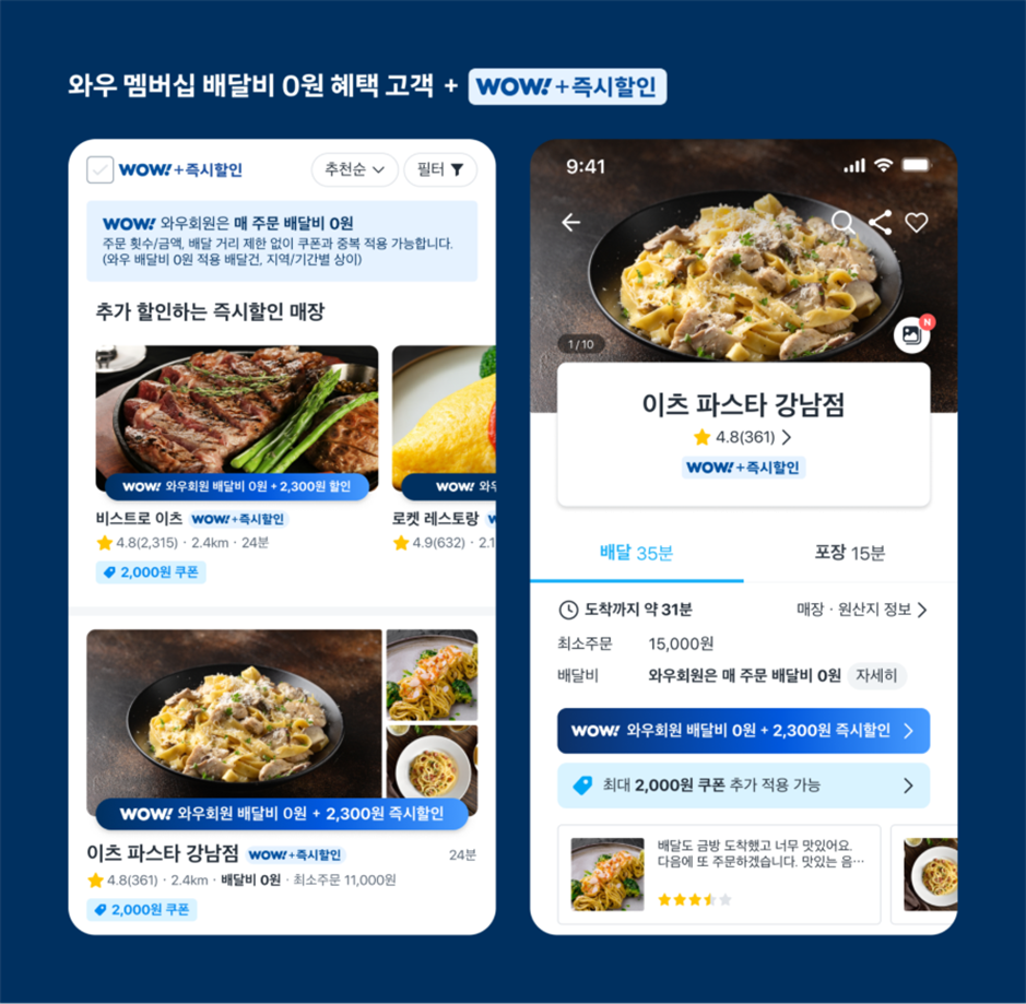 - “와우+즉시할인” 매장 전용 리스트 제공