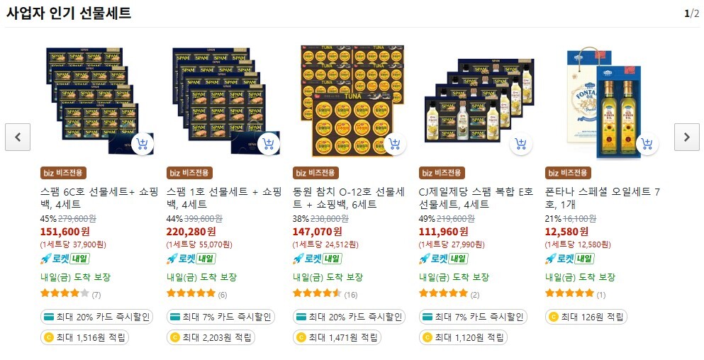 ✔’쿠팡비즈’ 회원이라면 선물세트 구매 시 할인 혜택이!